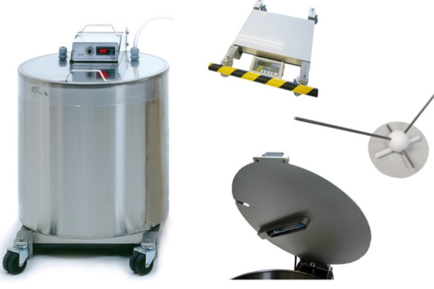 Minitube 稀释剂加热罐系统分为:100和200升,可以用紫外线对水照射进行消毒,这在生产过程中有助于达到清洁卫生的作用,此款设备带加热盖和紫外线灯的温控搅拌桶,加热的盖子防止蒸汽冷凝,从而消除水滴落入桶可能产生的污染源,要在精液稀释剂加入搅拌桶之前。